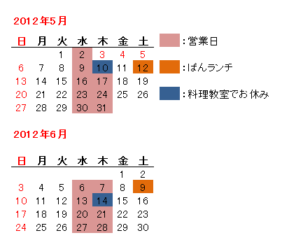 - 営 業 日 水曜日・木曜日 加えて土曜日のぱんランチ