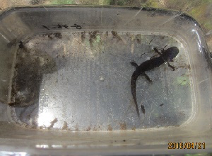 探しに夢中になります。こんな大きなサンショウウオも捕まえました。