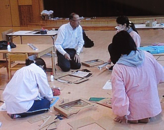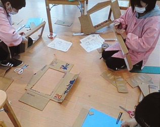 3月26日に、市内保育園の保育士さんたちと「空き箱利用の紙芝居舞台」作りをしました。
