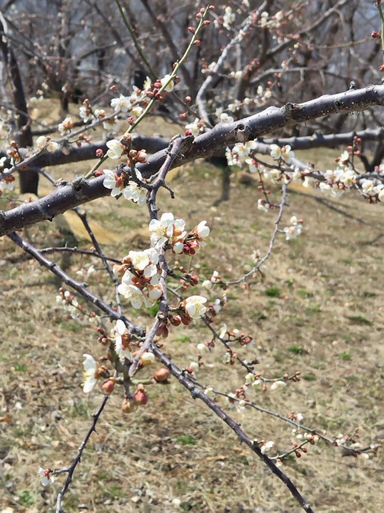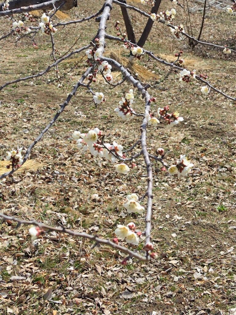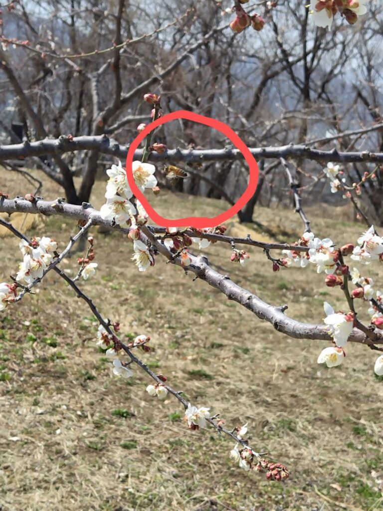 嬉しいお知らせです。ここのところの温かさで開花も一気にすすんでいます。そして今日は蜜蜂まで見つけました。羽音を辿って目を凝らすと忙しく飛び回る小さな虫を見つけました。まだ満開には少し早く断定出来ませんが、豊作を期待できます!