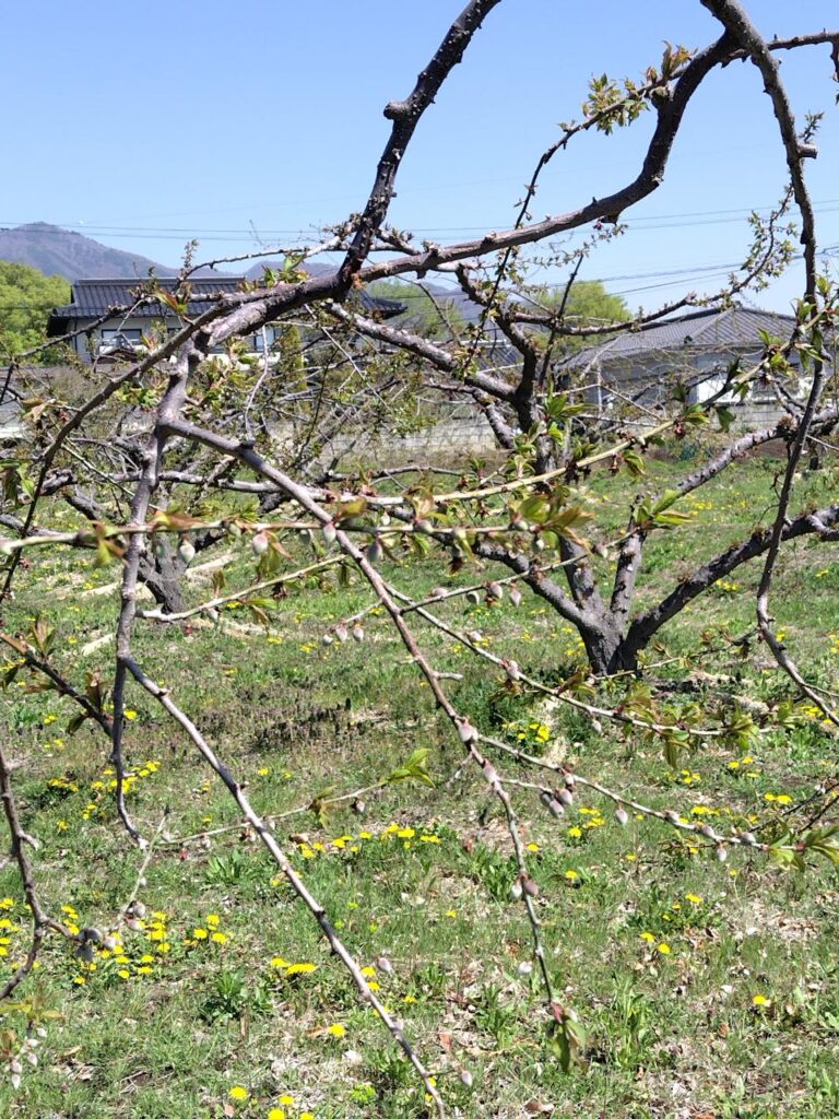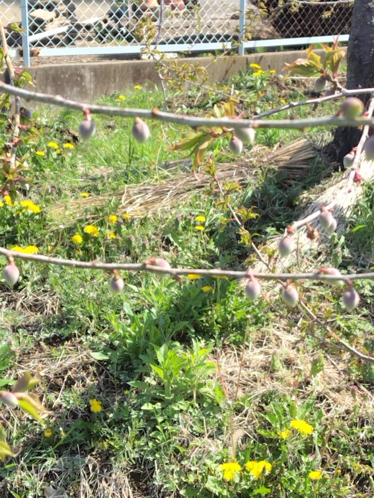 季節は進んでいます。花が咲き、花びらが散り、蕊と顎が残り、それらも落ちて小さな実が現れました。受粉が上手くいった証拠でこの小さな実が成長して大きくなり、収穫を迎えます。勿論今後自然落下や選果で数は減りますが、豊作が期待されます!(俳句2句)
