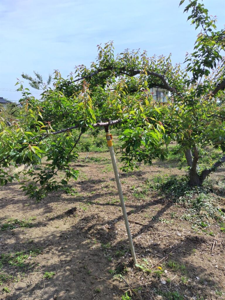 支柱を立てて膨らんだ実が付いた枝を支えています