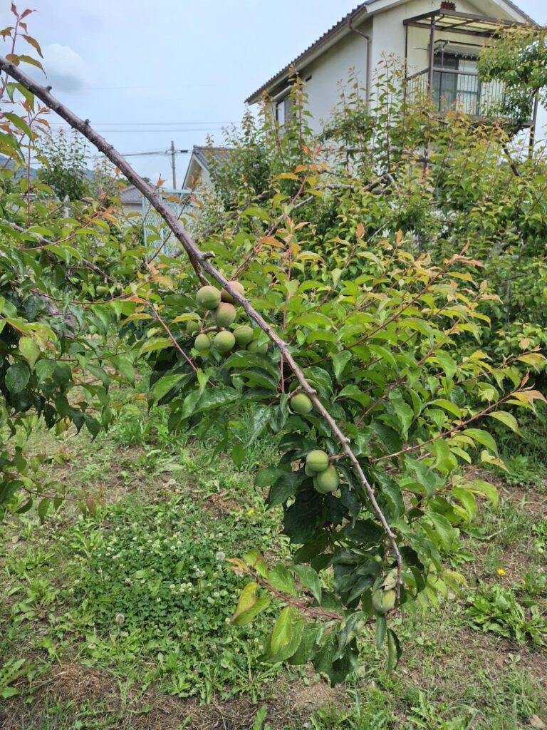 季節は進んでいます。草刈り、徒長枝切り、追肥をしながら梅の木を見ると実が目立ってきました。今まで葉に隠れていた小さな実が膨らんで一目で分かるようになってきました。発育は順調なようで、収穫時期が近づいています。