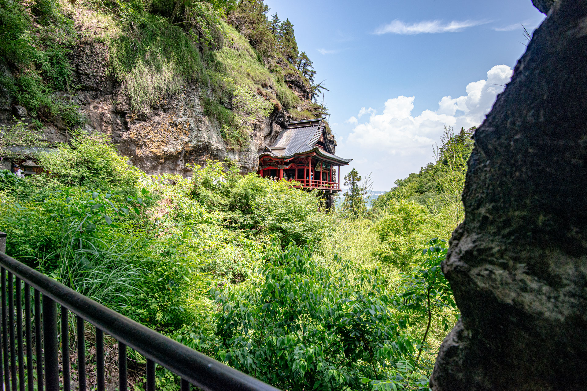 断崖に張り付くように建てられた本堂は、舞台造りが特徴。スリルと絶景を味わえる